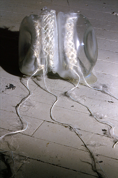 glass, mohair, cord, thread, acrylic polymer, 7.5" high, depth and width variable