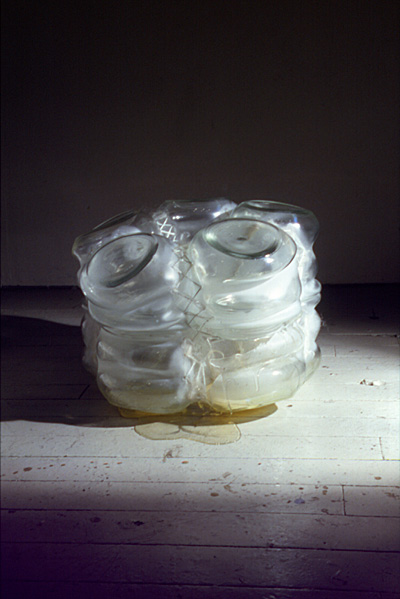 , glass, mohair, cord, thread, acrylic polymer, 13 x 17 x 19"