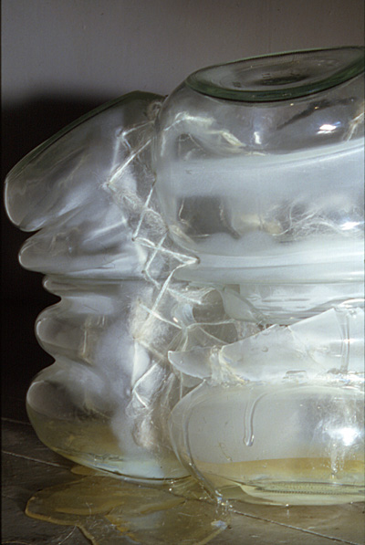, glass, mohair, cord, thread, acrylic polymer, 13 x 17 x 19"